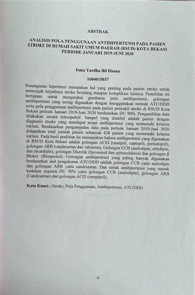 Analisis Pola Penggunaan Anthihipertensi Pada Pasien Stroke Di Rsud Kota Bekasi